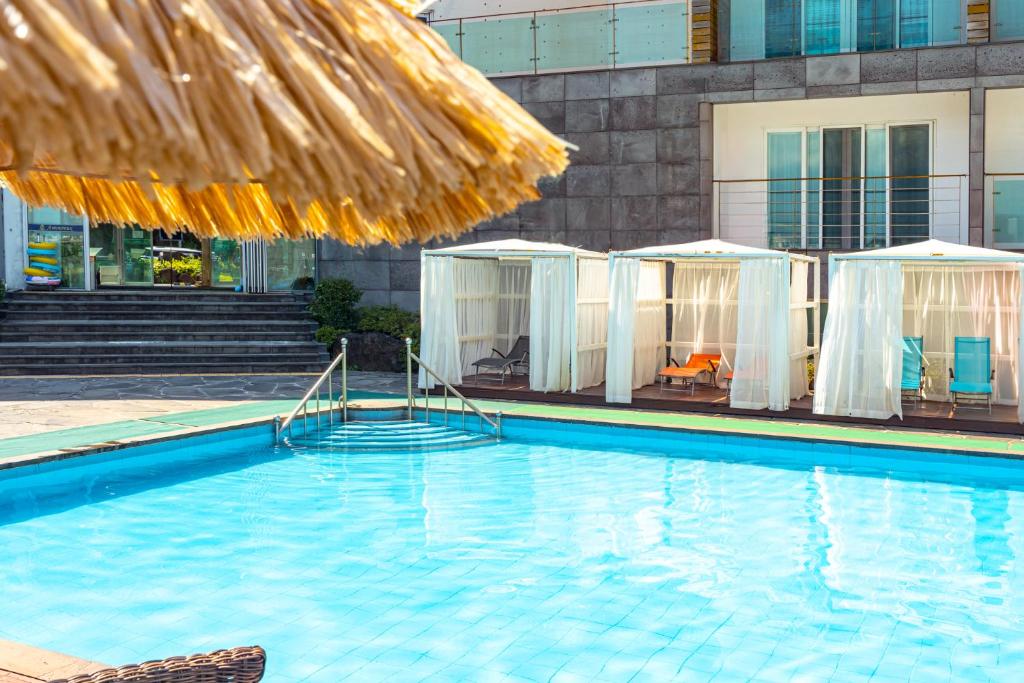 Nestled just 7 kilometers from Jeju’s vibrant city center, Amoureux Resort Jeju offers an ideal retreat for travelers seeking both relaxation and accessibility. Built in 2011 and thoughtfully renovated in 2016, this modern hotel boasts 162 well-appointed rooms designed to provide a comfortable and memorable stay. Whether you're arriving from Jeju Airport, just a 15-minute drive away, or exploring the island’s scenic landscapes, Amoureux Resort serves as a perfect base for your adventures.