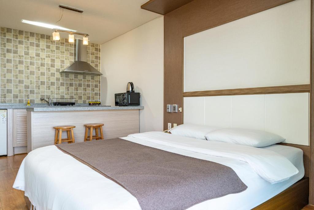I arrived in Jeju Island during the peak season without a reservation and urgently searched for a place to stay, booking it without much expectation, but I was satisfied with my one-night stay. It was affordable, and although I was worried because I had a child, we slept comfortably on the double bed (queen-sized for two). It was close to Iho Tewoo Beach, making it convenient for swimming, and right next to the Rainbow Coastal Road, which was nice for morning walks. The breakfast was paid, but for the price, there was a variety of rice, side dishes, bread, and fruits, which I was pleased to share with my child. I recommend it if you're looking for a cost-effective place near Jeju Airport.^^
