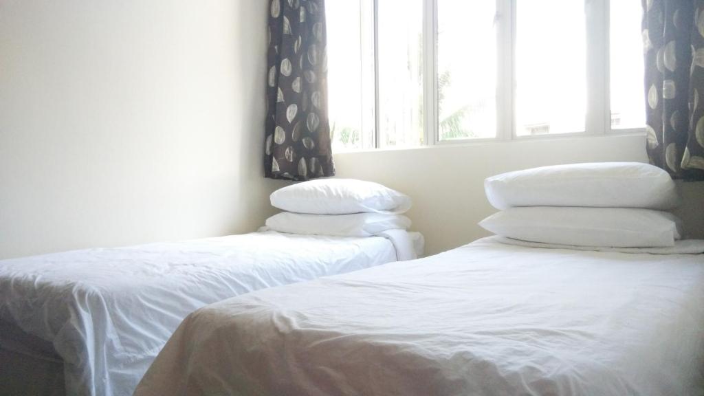 Has 9 bedrooms (18 beds) , big livinv room,big parking area for 8 cars I think. Has water dispenser for hot and cold water,fridge, washing machine, plates & etc but no stove. Each room has its own toilet, hair dyer, aircon, 2 in 1 shampoo, towels. Can easily check in check out thru lock codes. Located i n Ipoh city center.
