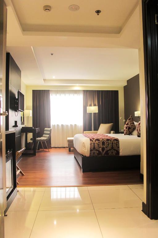 Brentwood Suites - Quezon City offers a range of spacious and well-appointed rooms to cater to every traveler's needs. From the expansive Junior Suite, featuring 54 square meters of space and two comfortable King Beds, to the stylish Premiere King and Premiere Twin rooms, each measuring 28 square meters and offering a plush King Bed or two Double Beds respectively, there is a perfect room for everyone. For those seeking a cozy retreat, the Superior room with 25 square meters of space and two Single Beds is an ideal choice.