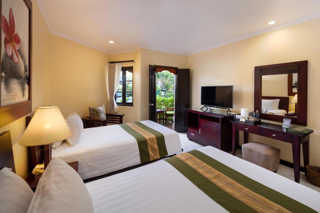 L'Adi Dharma Hotel Kuta ofereix una selecció d'habitacions dissenyades per satisfer les necessitats de cada viatger. La Deluxe Room, amb 35 metres quadrats, proporciona un espai acollidor amb un llit doble, ideal per a parelles que busquen confort i tranquil·litat. Per a famílies, l'habitació Family, que abasta 38 metres quadrats, permet diverses configuracions amb dues llits individuals, un llit doble o fins i tot dos llits dobles, garantint així que tots tinguin un lloc còmode per descansar. Si busqueu un accés directe a la piscina, la Superior Pool Access de 30 metres quadrats és una opció perfecta, amb la flexibilitat de triar entre un llit doble o dues llits individuals. Finalment, la Superior Room, també de 30 metres quadrats, ofereix un ambient elegant amb un llit doble, ideal per aquells que valoren l'estil i la comoditat en el seu allotjament.