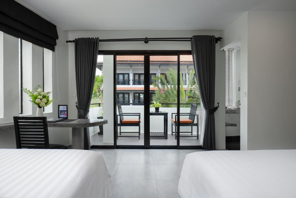 Step outside the hotel and find yourself immersed in the bustling streets of Siem Reap's central area. Take a leisurely stroll along the lively Pub Street, where you can sample delicious Khmer cuisine, sip on tropical cocktails, and soak up the lively atmosphere. Browse through the vibrant Night Market, a treasure trove of local handicrafts, souvenirs, and street food stalls. For those seeking a taste of Cambodian history and culture, the Old Market (Phsar Chas) is a must-visit, offering an authentic local experience with its array of fresh produce, spices, and traditional goods.