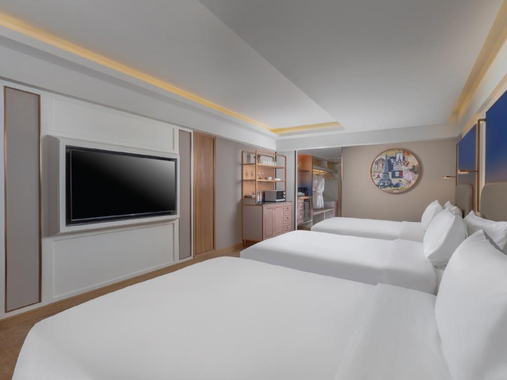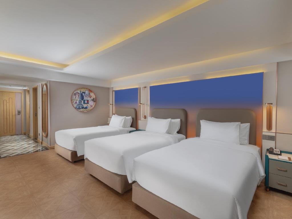 Der Grand President Bangkok bietet eine beeindruckende Auswahl an Zimmern, die sowohl für Geschäftsreisende als auch für Familien ideal sind. Die 1-Bedroom Executive Suite, großzügig mit 60 Quadratmetern, ist mit einem eleganten King-Bett oder zwei Einzelbetten ausgestattet und bietet einen perfekten Rückzugsort. Für Familien gibt es die 1-Bedroom Family Suite, die Platz für einen King-Bett und ein Schlafsofa bietet, und die Family Room für 4 Personen, die mit einem King-Bett oder zwei Schlafsofas ideal für einen Familienaufenthalt ist. Wenn Sie noch mehr Platz benötigen, ist die 2-Bedroom Connecting Suite mit insgesamt 120 Quadratmetern und zwei King-Betten eine hervorragende Wahl. Für Reisende, die eine komfortable und stilvolle Unterkunft suchen, stehen die Grand Superior Zimmer mit 35 Quadratmetern und einem King-Bett oder zwei Einzelbetten zur Verfügung, die sich perfekt für einen erholsamen Aufenthalt im Herzen von Bangkok eignen.