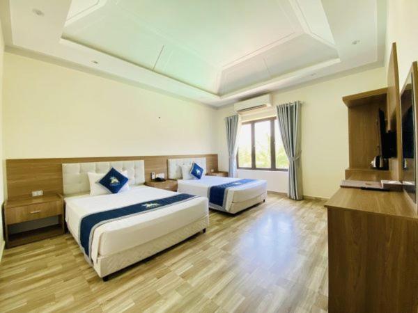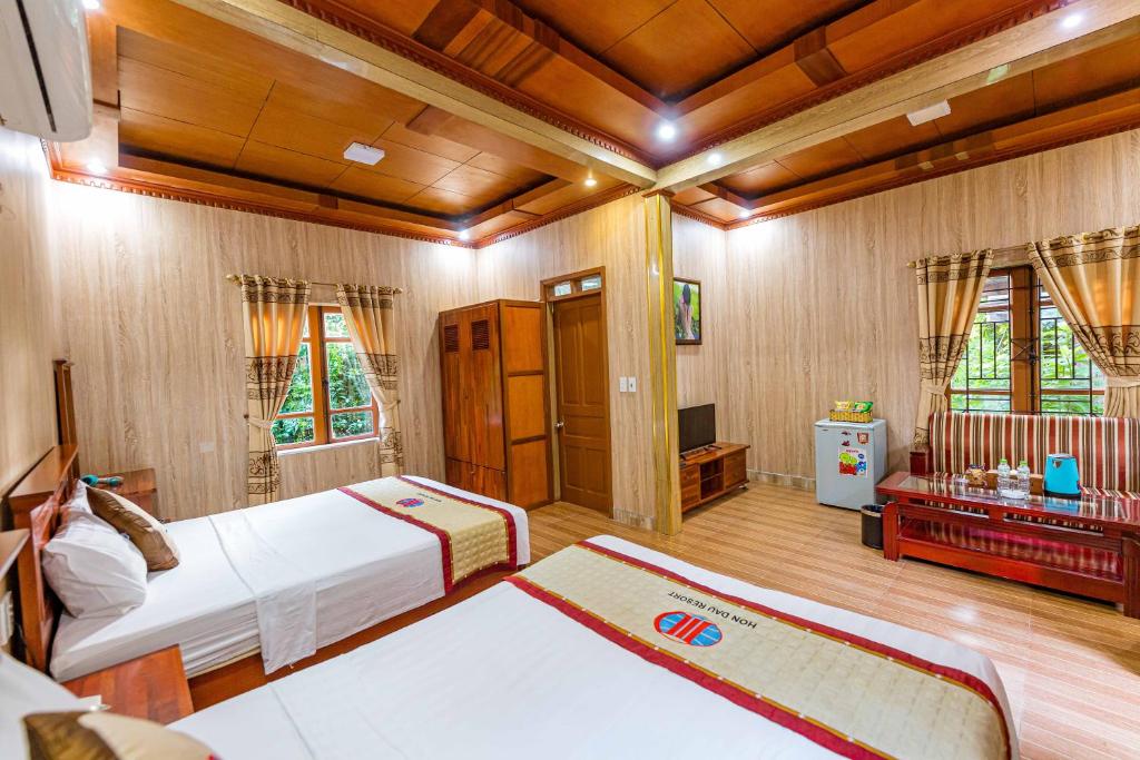 Das Hon Dau Resort bietet eine exquisite Auswahl an Zimmern, die sowohl Komfort als auch Stil vereinen. Die Deluxe-Zimmer mit einer großzügigen Fläche von 30 Quadratmetern sind mit einem eleganten Queen-Bett ausgestattet und sorgen für eine ruhige und entspannende Atmosphäre. Für Gäste, die mehr Platz wünschen, stehen die Standard Bungalows zur Verfügung, die sich über 42 Quadratmeter erstrecken und mit einem luxuriösen King-Bett ausgestattet sind. Jedes Zimmer im Hon Dau Resort ist so gestaltet, dass es den perfekten Rückzugsort für Erholungssuchende bietet.