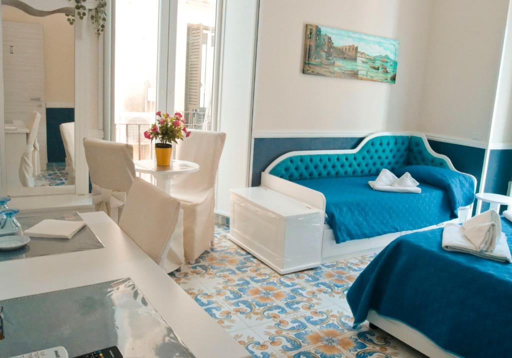 Zusätzlich sind die Zimmer mit einem Balkon oder einer Terrasse ausgestattet, die einen herrlichen Blick auf die Umgebung bieten und zum Verweilen einladen. Bereiten Sie sich eine Tasse Kaffee oder Tee mit der bereitgestellten Maschine zu und genießen Sie die entspannte Atmosphäre. Die Badezimmer sind mit hochwertigen Toilettenartikeln ausgestattet, und frische Handtücher sowie Bettwäsche stehen Ihnen jederzeit zur Verfügung. Im Olimpo degli Dei finden Sie alles, was Sie für einen unvergesslichen Aufenthalt in der bezaubernden Stadt Neapel benötigen.