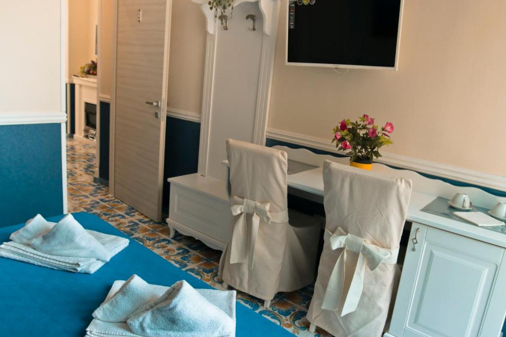 Im Olimpo degli Dei in Neapel erwarten Sie komfortable und stilvoll eingerichtete Zimmer, die mit einer Vielzahl von Annehmlichkeiten ausgestattet sind, um Ihren Aufenthalt so angenehm wie möglich zu gestalten. Jedes Zimmer verfügt über eine individuelle Klimaanlage, die für ein ideales Raumklima sorgt, unabhängig von der Jahreszeit. Entspannen Sie sich nach einem erlebnisreichen Tag in Neapel und genießen Sie Ihre Lieblingssendungen auf dem Fernseher mit Satelliten- oder Kabelanschluss. Für zusätzlichen Komfort stehen Ihnen auch ein Kühlschrank sowie eine Mini-Bar zur Verfügung, die eine Auswahl an erfrischenden Getränken bietet.