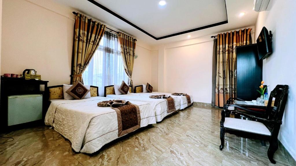 Das Song Huong Hue Hotel bietet eine vielfältige Auswahl an Zimmern, die ideal für jeden Reisenden sind. Die komfortablen Doppelzimmer mit zwei Doppelbetten, die sich über 22 Quadratmeter erstrecken, sind perfekt für Familien oder Gruppen, die gemeinsam reisen. Für diejenigen, die eine entspannende Aussicht genießen möchten, steht das großzügige Dreibettzimmer mit Gartenblick ebenfalls mit 22 Quadratmetern zur Verfügung und lädt dazu ein, die natürliche Schönheit der Umgebung zu erleben. Zudem bietet das Hotel elegante Deluxe-Doppelzimmer, die auf 20 Quadratmetern eine harmonische Atmosphäre schaffen und ideal für Paare oder Alleinreisende sind, die einen ruhigen Rückzugsort suchen.