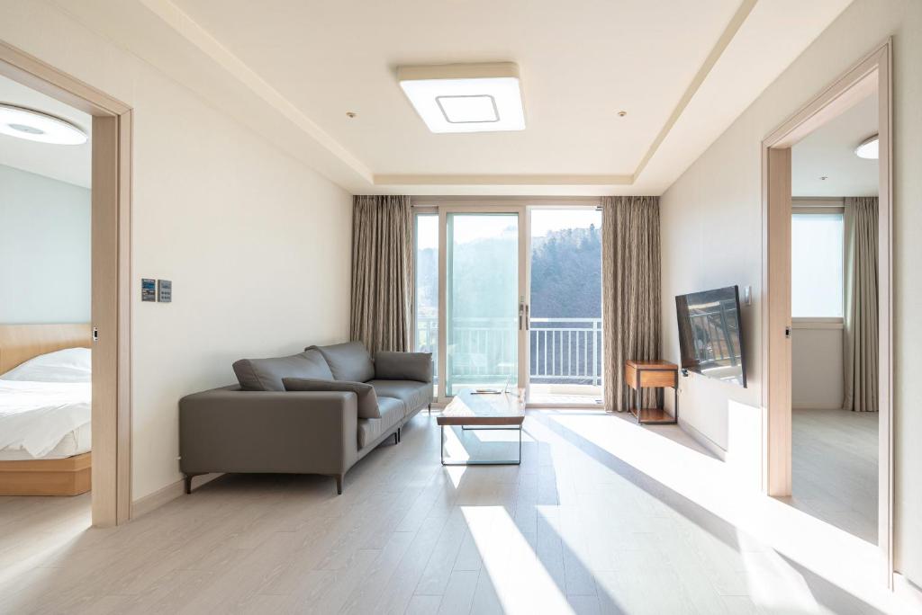 Step into the lap of luxury at Elysian Gangchon, where every room is thoughtfully designed to provide the utmost comfort and convenience. Each room is equipped with top-notch amenities, including air conditioning to ensure a pleasant stay, a hair dryer for your grooming needs, and a television for entertainment. Moreover, the rooms feature a balcony or terrace, offering breathtaking views of the surrounding natural beauty, creating a serene and tranquil ambiance. The refrigerator allows you to store your favorite snacks and beverages, while the plush towels add a touch of indulgence to your stay. Additionally, the separate living room provides a spacious and private area for relaxation and unwinding after a day of adventure.
