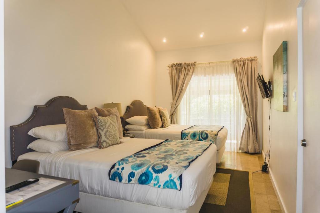 En el Blue Lagoon Hotel and Marina Ltd, los huéspedes pueden elegir entre una variedad de habitaciones diseñadas para brindar comodidad y estilo. La opción de Superior King Room ofrece un amplio espacio de 46 metros cuadrados, ideal para aquellos que buscan un refugio acogedor. Para familias o grupos, el Superior Queen Room con Dos Camas Queen y el Executive Queen Room con Dos Camas Queen, ambos también de 46 metros cuadrados, son perfectos para disfrutar de una estancia compartida sin sacrificar el confort. Si prefieres un ambiente más versátil, el King Studio con Sofá Cama, igualmente de 46 metros cuadrados, se adapta a tus necesidades. Además, el King Room con Vista a la Piscina y el Queen Room con Vista a la Piscina, de 46 y 37 metros cuadrados respectivamente, ofrecen una experiencia visualmente encantadora, permitiendo a los huéspedes disfrutar de la belleza del entorno tropical desde la comodidad de su habitación.