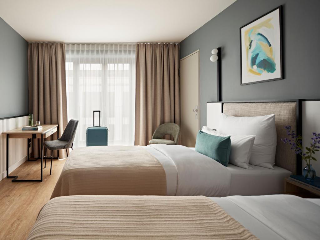Llegar al Angleterre Hotel Berlin, situado en el vibrante distrito de Kreuzberg, es un proceso sencillo y cómodo desde cualquiera de los aeropuertos cercanos a Berlín. Si aterrizas en el Aeropuerto de Berlín-Tegel (TXL), puedes optar por tomar un taxi, que te llevará directamente al hotel en aproximadamente 30 minutos, dependiendo del tráfico. Alternativamente, puedes utilizar el transporte público: toma el autobús TXL hasta la estación de tren de Zoologischer Garten y luego transborda al S-Bahn (línea S5, S7 o S9) en dirección a Spandau. Después, baja en la estación de Warschauer Straße, que está a solo unos minutos a pie del hotel.