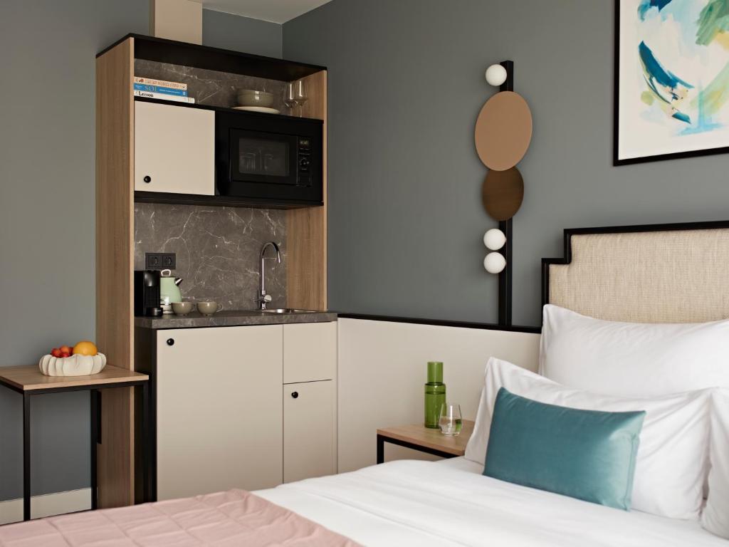 Las habitaciones también están equipadas con un sistema de entretenimiento que incluye películas de pago, brindando la oportunidad de disfrutar de una noche de cine en la comodidad de su habitación. Para aquellos que valoran la comodidad, el mini bar está disponible, repleto de refrescos y aperitivos, ideal para satisfacer cualquier antojo. Y, por supuesto, cada baño cuenta con un secador de pelo, asegurando que los huéspedes puedan prepararse con facilidad antes de explorar la vibrante ciudad de Berlín.