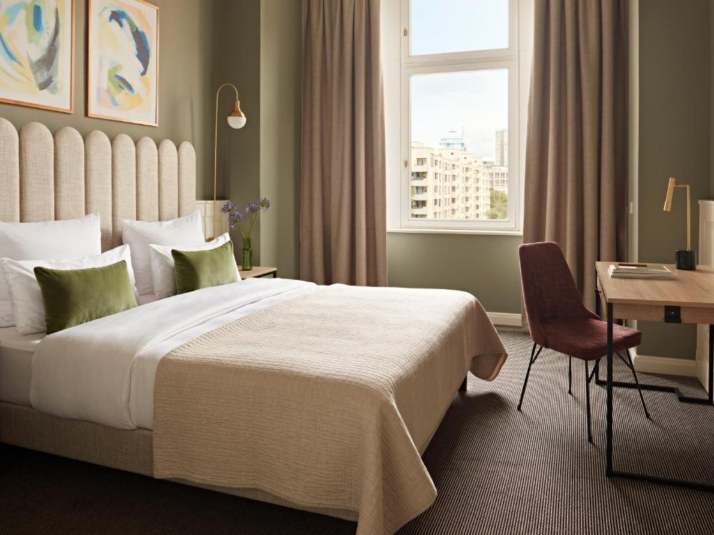 El Angleterre Hotel Berlin ofrece una variedad de habitaciones diseñadas para satisfacer las necesidades de todos los viajeros. Desde la acogedora Comfort Double Room de 24 metros cuadrados, perfecta para una escapada romántica, hasta la espaciosa Deluxe Double Room de 32 metros cuadrados, ideal para quienes buscan un poco más de lujo. La Standard Double Room de 23 metros cuadrados proporciona un refugio cómodo y funcional, mientras que la impresionante Suite de 50 metros cuadrados ofrece un amplio espacio para relajarse y disfrutar de una estancia memorable. Cada tipo de habitación en el Angleterre Hotel Berlin está pensada para ofrecer una experiencia única y placentera.