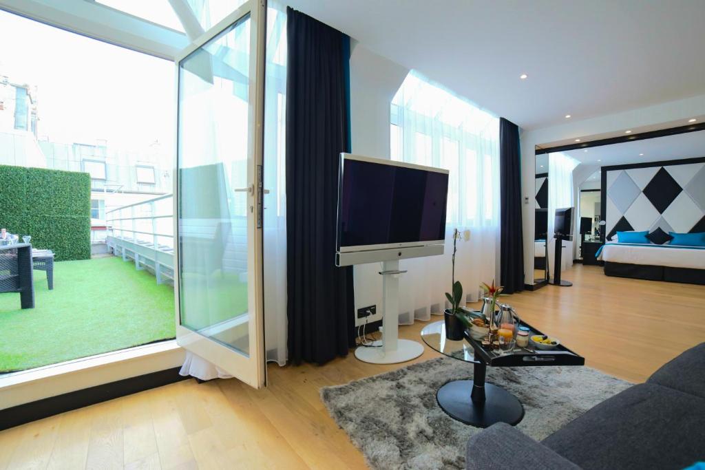 Lisäksi L'Empire Paris Hotelin huoneissa on erillinen olohuone, joka tarjoaa lisää tilaa rentoutumiseen ja oleskeluun. Kaikki huoneet on varustettu korkealaatuisilla liinavaatteilla, pyyhkeillä ja ylellisillä hygieniatuotteilla, jotka tekevät oleskelustasi entistäkin mukavampaa. Monet huoneista tarjoavat myös parvekkeen tai terassin, jolta avautuu upea näkymä Pariisin kattojen ylle, täydellinen paikka nauttia aamukahvia tai ihailla auringonlaskua.