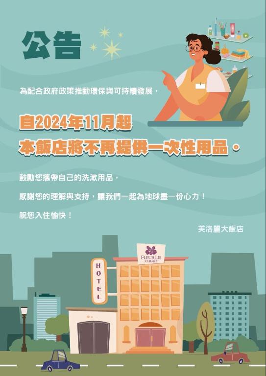 Starting from 1 November 2024, this hotel will no longer provide disposable amenities in accordance with government regulations. If you have any requirements during your stay, please do not hesitate to contact the front desk for assistance