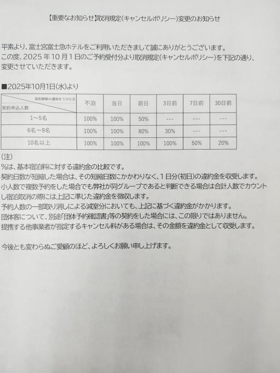 Fujinomiya Fujikyu Hotel's policy regarding children's bedding considers guests age 6 years and older as adults, and therefore requires an extra bed. If an additional charge applies, you can find additional information about specific child policy and age range for this property, by checking the "Property policies" section located in the property page for more details.