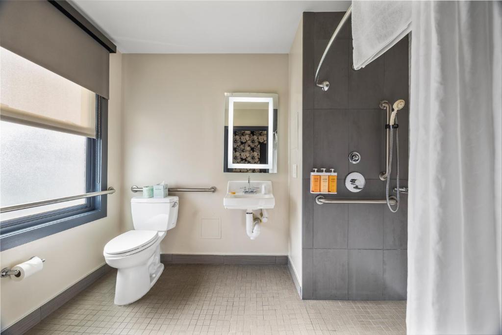 I booked a queen-accessible, but it was not accessible, very tiny, not like the pictures. Room was clean and no complaints there, staff was great, location is in not so beautiful part of SF, but we had no issues. I would recommend if you need a place to stay for a day or two, just be aware rooms are small.