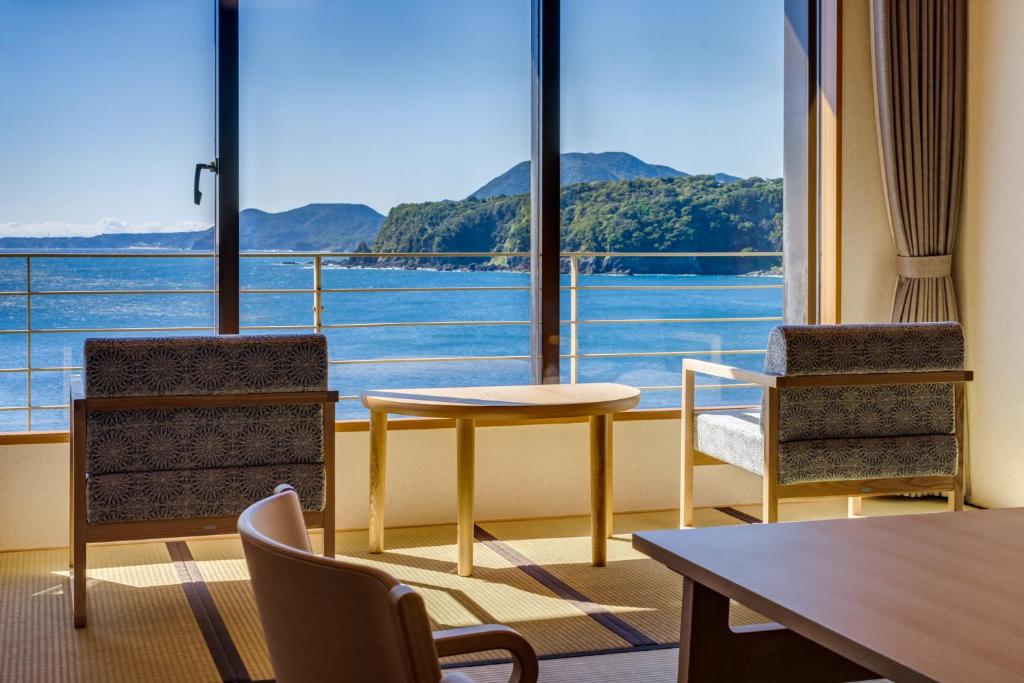 Enjoy stunning oceanfront views and an authentic Japanese atmosphere at this hotel. The staff provides exceptional service, with cozy traditional rooms featuring comfortable tatami and a scenic sofa. Relax in a private in-room hot spring bath. Savor delicious Japanese cuisine, including luxurious dinner options. Modern amenities include a tablet with tourist information and a free shuttle service to the nearest train station.