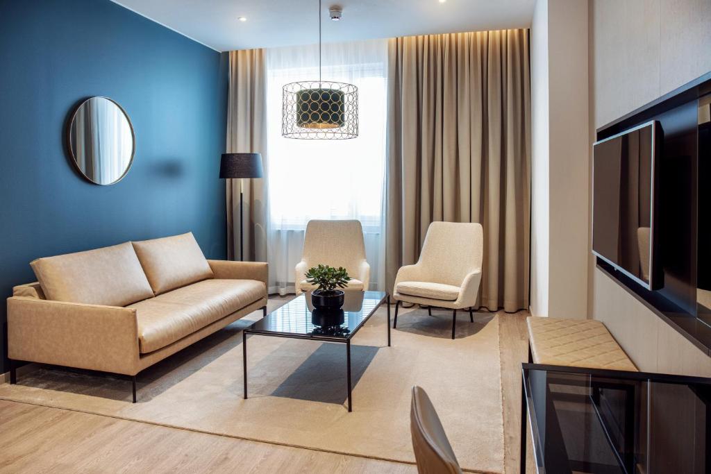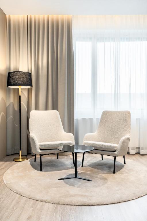 Discover a variety of inviting room options at Hotel Matts in Espoo, tailored to meet different needs and preferences. Guests can choose from well-designed Standard Twin Rooms and Superior Twin Rooms, both offering 24 square meters of space with two single beds, perfect for those seeking a cozy stay. For travelers looking for a more independent experience, the Studio Apartment provides 27 square meters with a comfortable double bed, while the One-Bedroom Apartment offers a generous 44 square meters featuring a queen bed and a sofa bed, ideal for families or longer stays.