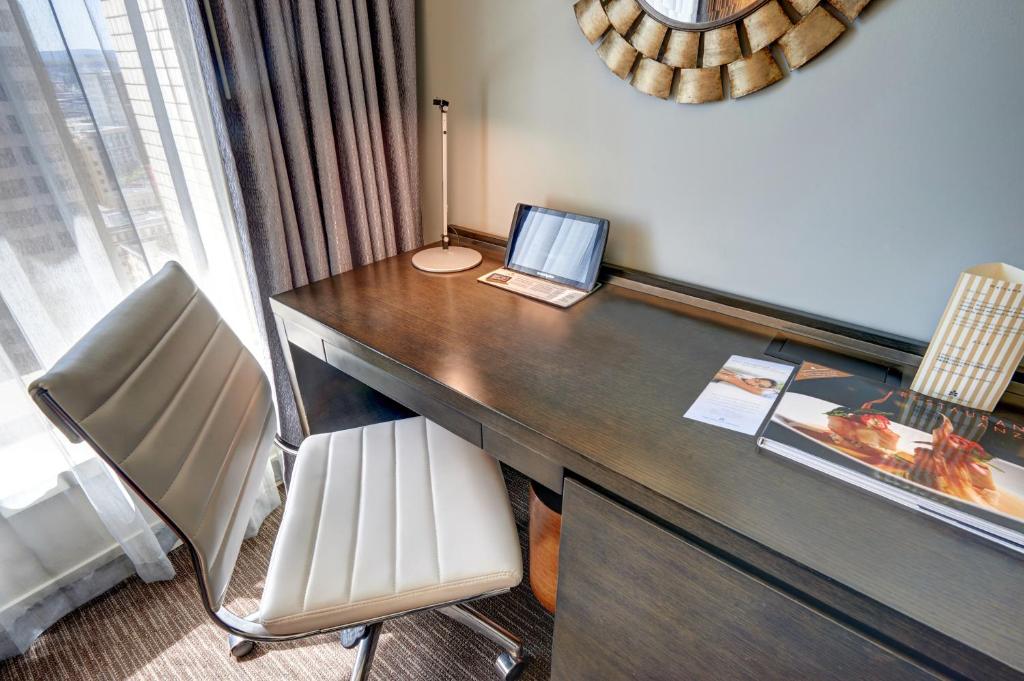 Unwind and relax in the privacy of your room with the in-house movies available for your entertainment. Get ready for a night out in the city with the hair dryer provided, ensuring you look your best. Stay entertained with the television, offering a wide range of channels for your viewing pleasure. Quench your thirst with the mini bar, stocked with a variety of beverages and snacks. Enjoy your favorite shows and movies with the satellite/cable TV available in every room. For those seeking a cozy ambiance, select rooms feature a fireplace, creating a warm and inviting atmosphere.