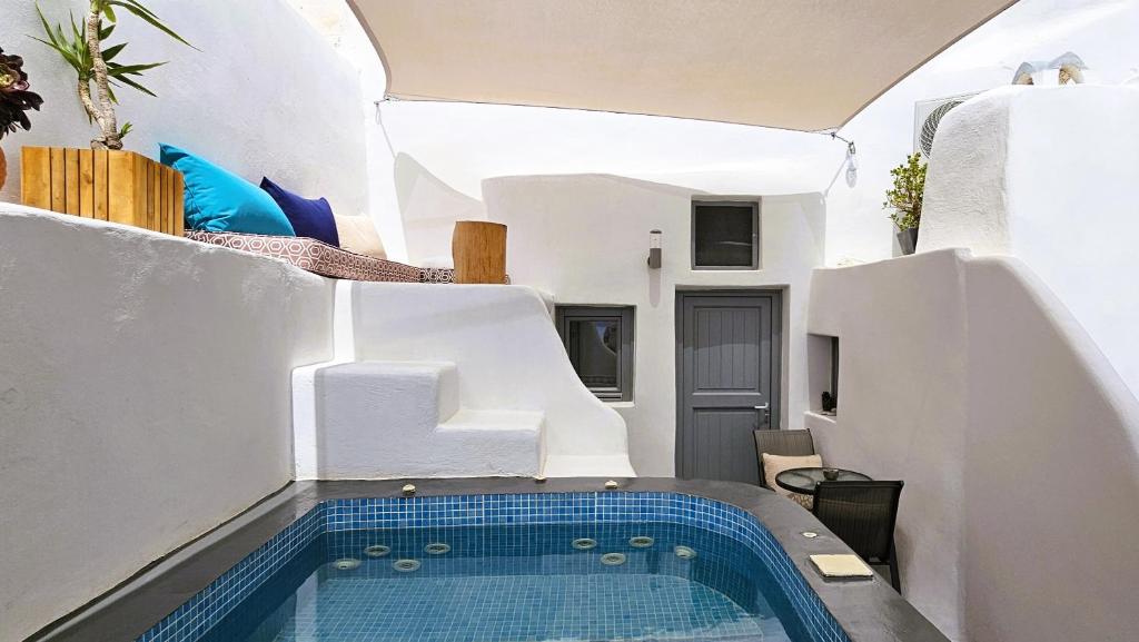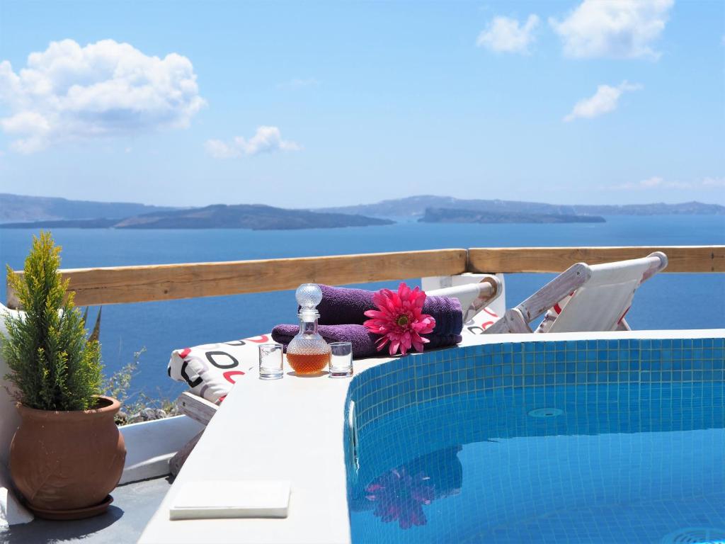 A szálláshely területén található jakuzzi egy igazi oázis a pihenésre vágyók számára. A pezsgő víz és a kellemes légkör tökéletes helyszínt biztosít a romantikus pillanatokhoz vagy a baráti beszélgetésekhez. Ezen kívül a szálloda gyönyörű kertje ideális helyszín a napozásra és a természet közelségének élvezetére. A zöldellő környezet és a virágok látványa garantálja, hogy a vendégek felejthetetlen élményekkel gazdagodjanak, miközben felfedezik Santorini varázslatos világát.