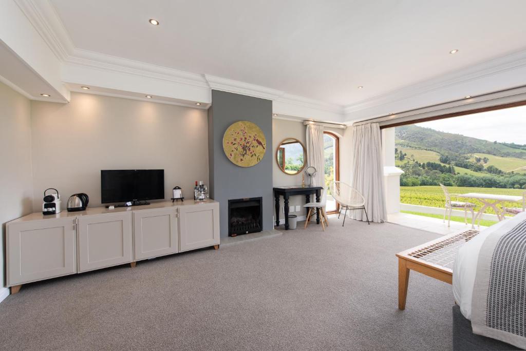 A Banhoek Lodge szobái a kényelem és az elegancia tökéletes egyensúlyát kínálják a vendégek számára. Minden szobában légkondicionáló gondoskodik a kellemes hőmérsékletről, így bármikor felfrissülhet a forró nyári napokon. A tágas teraszok vagy erkélyek lehetőséget adnak arra, hogy a vendégek élvezzék a csodás kilátást a környező dombokra, miközben egy csésze kávét vagy teát kortyolgatnak, amelyet a szobájukban található kávé- és teafőző biztosít. A minibárban található italok és snackek mindig kéznél vannak, hogy a vendégek bármikor élvezhessék a frissítőket.