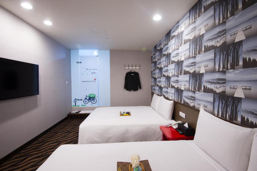 Great deal for families. Family Room is very spacious. The two beds is very big, i think queen size, can fit 2 adults and a small child. Toilet is very spacious too, but no bidet and needs more upkeep and cleaning. They do room service and change towels everyday. And provide bottled water too everyday. Room is carpeted, which can hide dirt but I noticed that they don’t clean / vacuum it well since a few small food scraps we made during our stay was not cleaned after the daily housekeeping. Location is 3-5 mins walk from MRT Station. And ~ 2 min walk from bus stops. Excellent location in Ximending as it is very close but not in the middle so it won’t be too noisy and crowded outside the hotel. Downstairs the hotel you will see NET clothing store immediately. Overall great stay.
