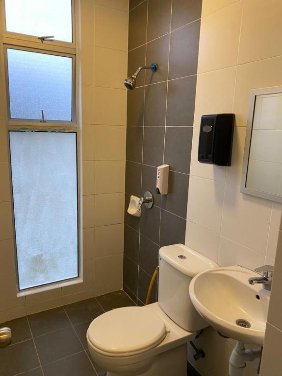 smooth check in. place is squeeky clean.. got wifi n tv..free parking..complete with basic requirement such as kettle..freezer..microwave..basic cutlery..iron..hairdryer..got also ruq n mini cloth..extra 2 single mattress complete with mattress sheet n futton..i got all this with low price..total 300 for 2 nite..