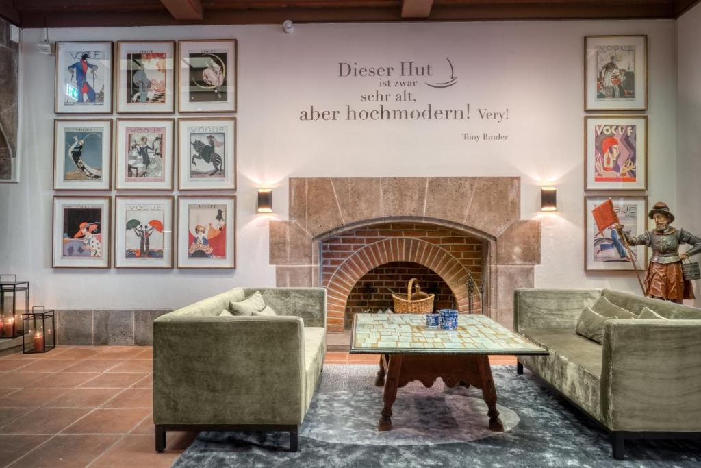 A szobákhoz tartozó külön nappali ideális helyszínt biztosít a családi vagy baráti összejövetelekhez, ahol a vendégek kényelmesen eltölthetik az időt. A gondosan válogatott toalett termékek pedig a kényelem és a luxus érzetét fokozzák, így a vendégek minden igényét kielégítik. Az Eisenhut Hotel szobái valóban a pihenés és a feltöltődés oázisát jelentik Rothenburg ob der Taube varázslatos városában.