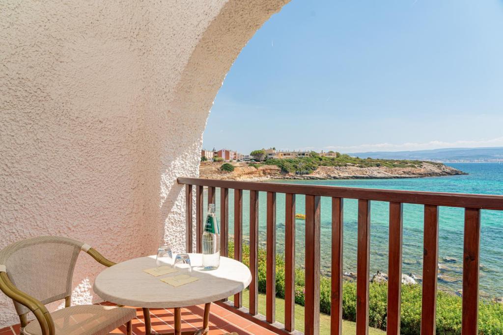 Otroligt läge med privat strand! Bra att solstol och parasoll är gratis både vid pooler och på stranden. Goda drinkar ocu god mat i restaurangen. Frukost med otrolig utsikt. Vi blev uppgraderade och fick en terrass med havsutsikt. Väldigt vänlig personal som var lösningsorienterad. Ligger aningen avsides gentemot Alghero, men går absolut att ta sig dit även utan bil. Rekommenderar verkligen detta ställe!