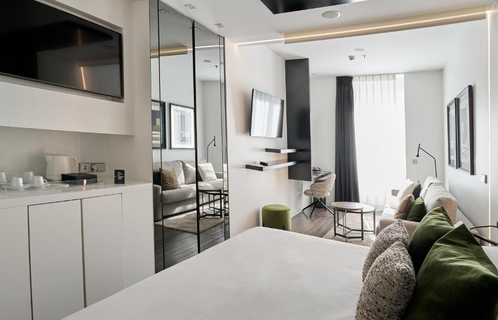A Hotel Regina Madrid szobái a kényelem és elegancia tökéletes ötvözetét kínálják, hogy vendégeink valóban otthon érezzék magukat. Minden szobában légkondicionáló biztosítja a kellemes hőmérsékletet, míg a blackout függönyök garantálják a zavartalan pihenést, akár nappal, akár éjszaka. A szobákban található televízió és műholdas/kábel TV lehetőséget ad arra, hogy a vendégek kedvenc műsoraikat élvezhessék, míg a mini bár és a hűtőszekrény frissítő italokkal várja az érkezőket. A kávé- és teafőző pedig lehetővé teszi, hogy a nap bármely szakában élvezhesse a frissítő italokat, legyen szó reggeli kávéról vagy délutáni teázásról.