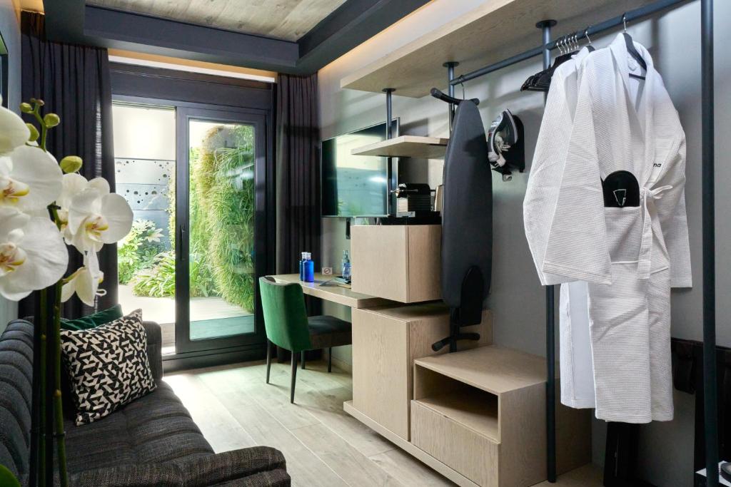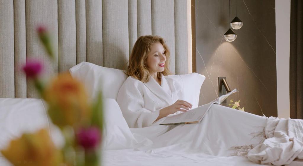 A fürdőszobák minden szükséges kényelemmel felszereltek, beleértve a hajszárítót és a prémium minőségű piperecikkeket, hogy vendégeink a legjobb élményben részesüljenek. A fürdőköpenyek és a puha törölközők a luxus érzetét keltik, míg a friss ágyneműk és a gondosan kiválasztott kiegészítők minden szobát egyedivé varázsolnak. A tágas erkélyek vagy teraszok pedig lehetőséget adnak arra, hogy a vendégek élvezzék a gyönyörű kilátást Madridra, miközben egy csésze kávé mellett pihennek. A Hotel Regina szobái tehát nem csupán egy hely a pihenésre, hanem egy igazi oázis a felfrissüléshez és a feltöltődéshez.