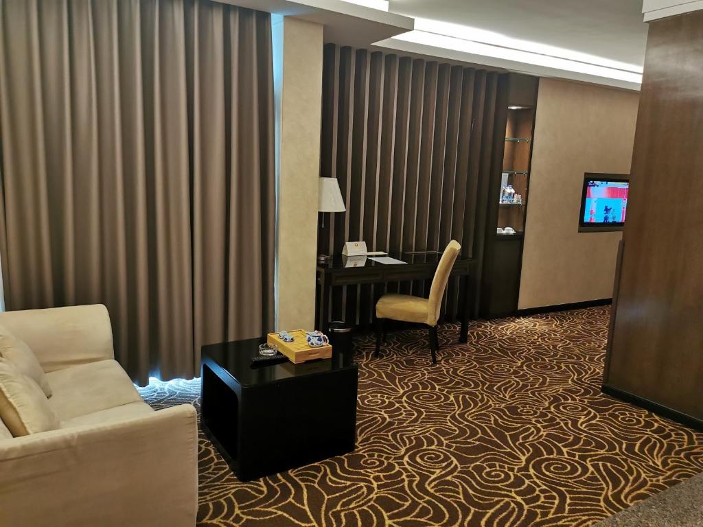 A Huashi Hotel szobái a kényelmet és a modern eleganciát ötvözik, hogy a vendégek számára felejthetetlen élményt nyújtsanak. Minden szobában légkondicionáló található, amely biztosítja a kellemes hőmérsékletet, függetlenül az időjárástól. A szobákban található fürdőköpenyek és prémium piperecikkek gondoskodnak a luxus élményről, míg a napi újság biztosítja, hogy a vendégek mindig naprakészen értesüljenek a világ eseményeiről. A különálló nappali tökéletes helyszínt biztosít a pihenésre, ahol a vendégek kényelmesen élvezhetik a szórakozást a síkképernyős TV-n, amely műholdas és kábelcsatornákat kínál.
