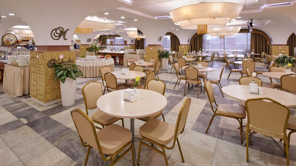 Az Izmailovo Gamma Hotel étkezési lehetőségei a vendégek kényelmét és ízlését egyaránt szolgálják. A szálloda éttermében gazdag reggeli büfé várja a látogatókat, ahol a friss péksütemények, ízletes gyümölcsök és különféle meleg ételek széles választékából lehet válogatni. Itt mindenki megtalálja a kedvére való falatokat, legyen szó édes vagy sós ízekről, így a nap tökéletesen indulhat.
