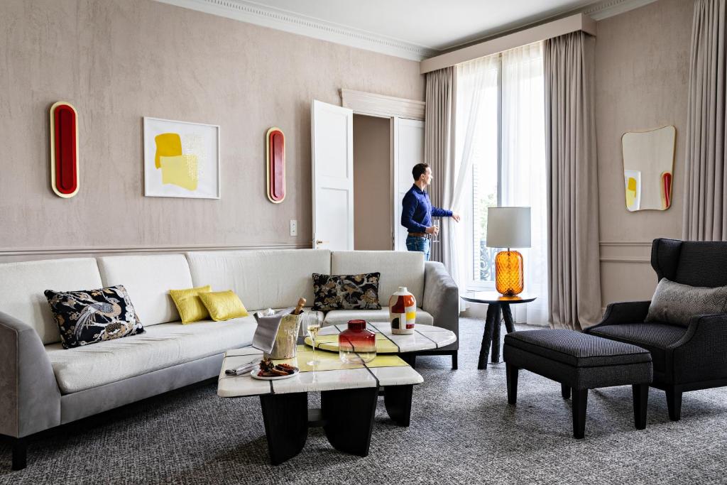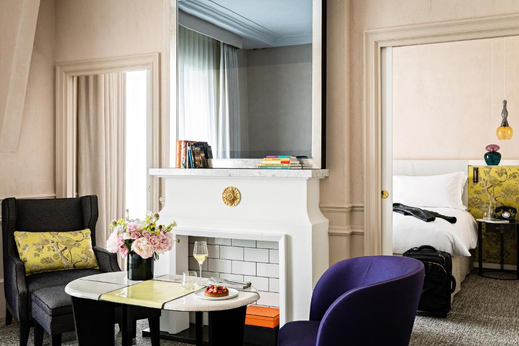 A kényelem érdekében a szobákban mini bár, hűtőszekrény és kávé/tea készítő is rendelkezésre áll, így bármikor élvezhetjük kedvenc italainkat. A vendégek számára ingyenesen biztosított palackozott víz és instant kávé/tea tökéletes kiegészítője a pihenésnek. A tágas szobák külön nappalival és kandallóval is rendelkeznek, amely egyedülálló hangulatot teremt. A fekete sötétítőfüggönyök garantálják a zavartalan pihenést, míg a puha ágyneműk és törölközők a maximális kényelmet nyújtják. A terasz vagy erkély lehetősége pedig lehetővé teszi, hogy a vendégek a párizsi életet élvezhessék a saját szobájuk kényelméből.