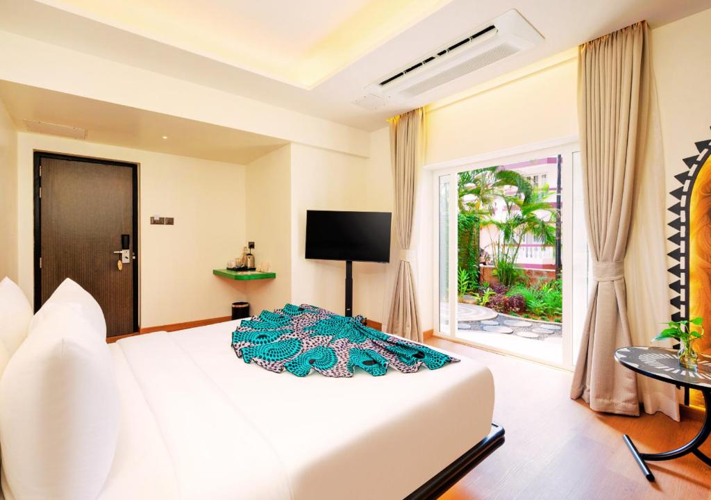 A Lotus an Eco Beach Resort Goa szobái a kényelem és a stílus tökéletes harmóniáját kínálják a látogatók számára. A Tulipe szoba 28 négyzetméteren helyezkedik el, és egy Queen ággyal várja a vendégeket, ideális választás a romantikus pihenéshez. A Deluxe szoba tágasabb, 36 négyzetméteres területével pedig 2 egyszemélyes vagy 1 franciaággyal rendelkezik, így tökéletes a családok vagy baráti társaságok számára. A Lotus an Eco Beach Resort Goa szobái minden igényt kielégítenek, biztosítva a felejthetetlen élményt a gyönyörű Goai tengerparton.