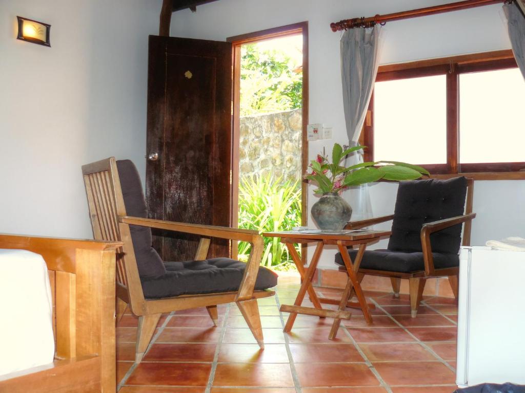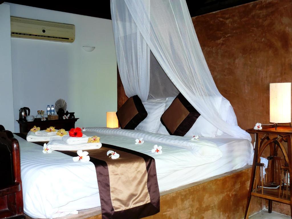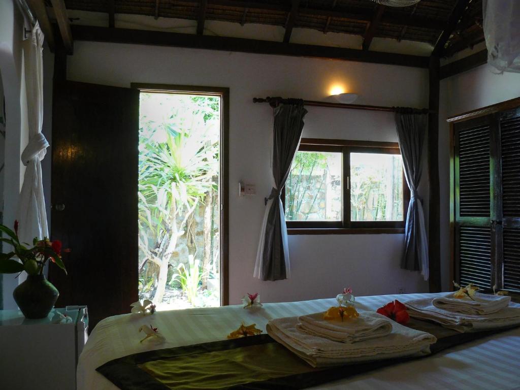 The room we booked was a bit misleading. A Superior Bungalow turned out to be the most inferior room attached to the cleaners quarters and hidden away from the actual bungalows. The room needs a lick of paint big time, and it didn't have a fan, mosquito net etc as pictured. When we arrived, there was just a really old, loud mini fridge which was difficult to sleep through the sound of. Although some of the staff were friendly, overall there was a feeling of being unwelcome. The breakfast is just eggs cooked one of 3 ways, a single piece of bacon and bread which was disappointing, and not great for a multi day stay as it gets boring very fast. The manager and his wife have a young boy that is sweet but poorly behaved, this wouldn't be an issue by itself but he doesn't seem to understand boundaries. Having a young baby we had to ask him multiple times to not throw the baby's toys on the floor, and he even threw a beach ball at out 6 months old's head. When asking his parents (the management) politely if they could ask him to be careful as our child is so young and we are trying to relax, it was met with a turned up nose. Children will be children, but allowing your much older child to swim naked in the pool and harass guests is poor management. It was Khmer New Year, so we didn't expect it to be quite, that being said some of the rooms where packed with mattresses on the floor and people blaring out bass music, something I feel takes away from the word 'Resort'. We do appreciate that a makeshift mosquito net was put in our room and a dirty freestanding fan was provided, but overall the stay was disappointing.