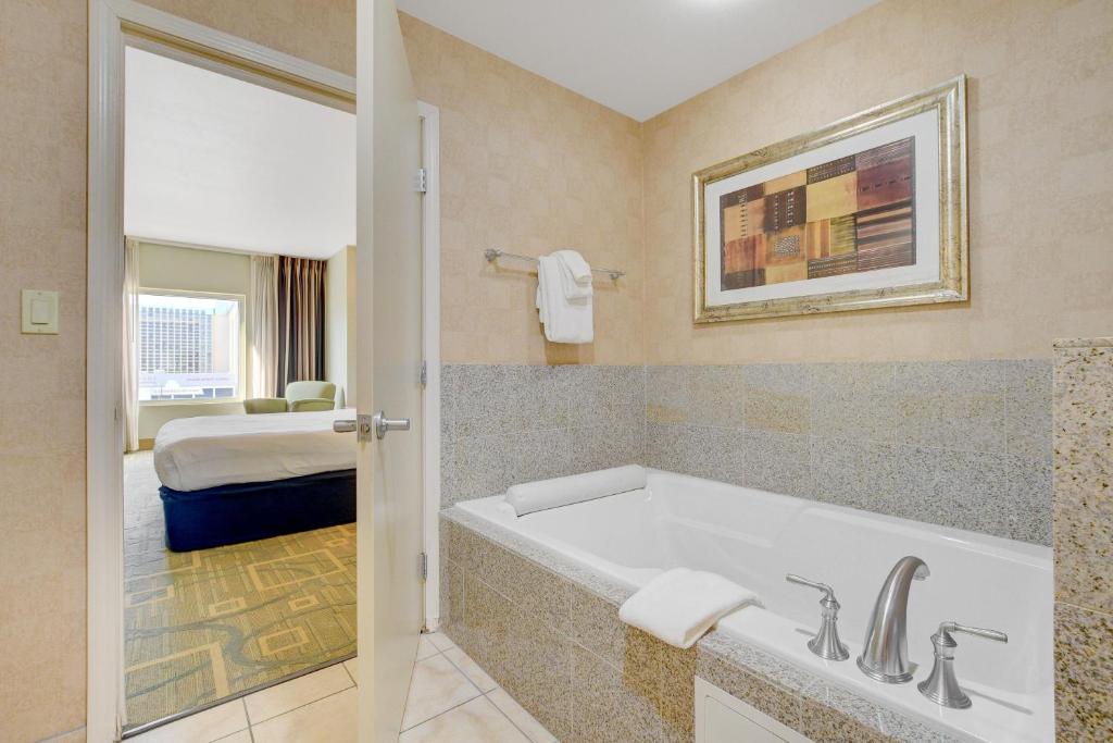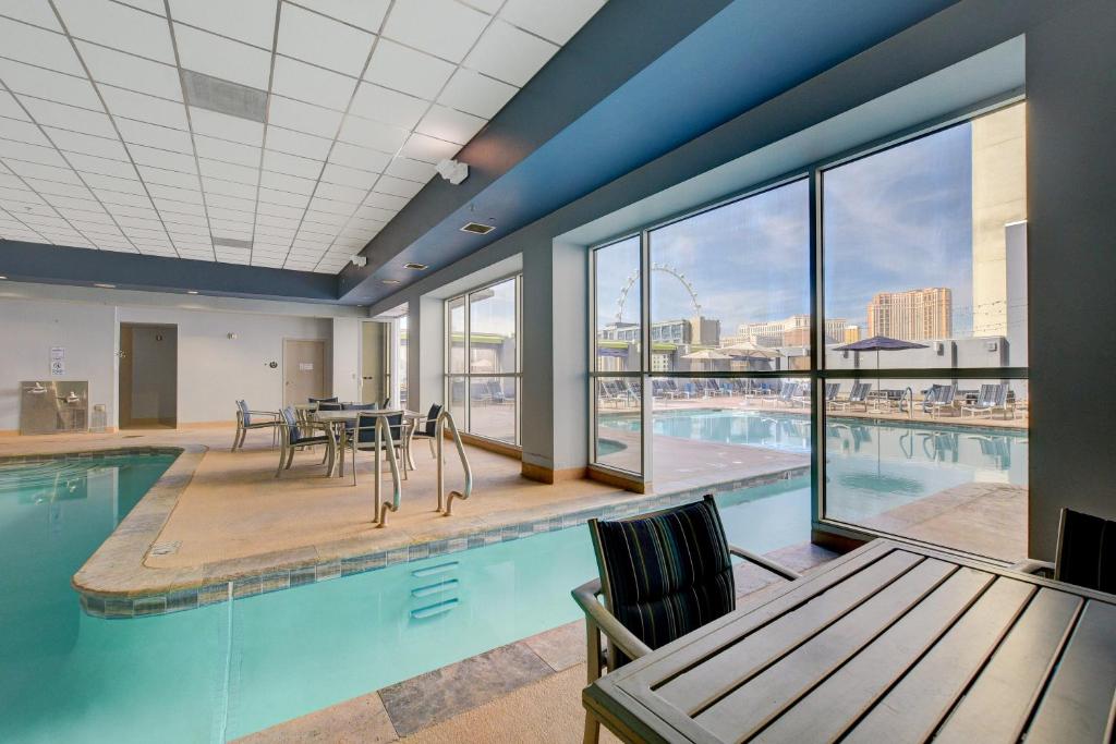 A Platinum Hotel és Spa Las Vegas szívében nemcsak a pihenés, hanem a sportolás szerelmeseinek is ideális helyszínt kínál. Az impozáns beltéri medence tökéletes választás, ha a nap bármely szakában felfrissülne egy kellemes úszás mellett. A medence körüli nyugodt környezet lehetővé teszi, hogy a vendégek élvezzék a víz adta élményeket, miközben elmerülnek a város vibráló atmoszférájában.
