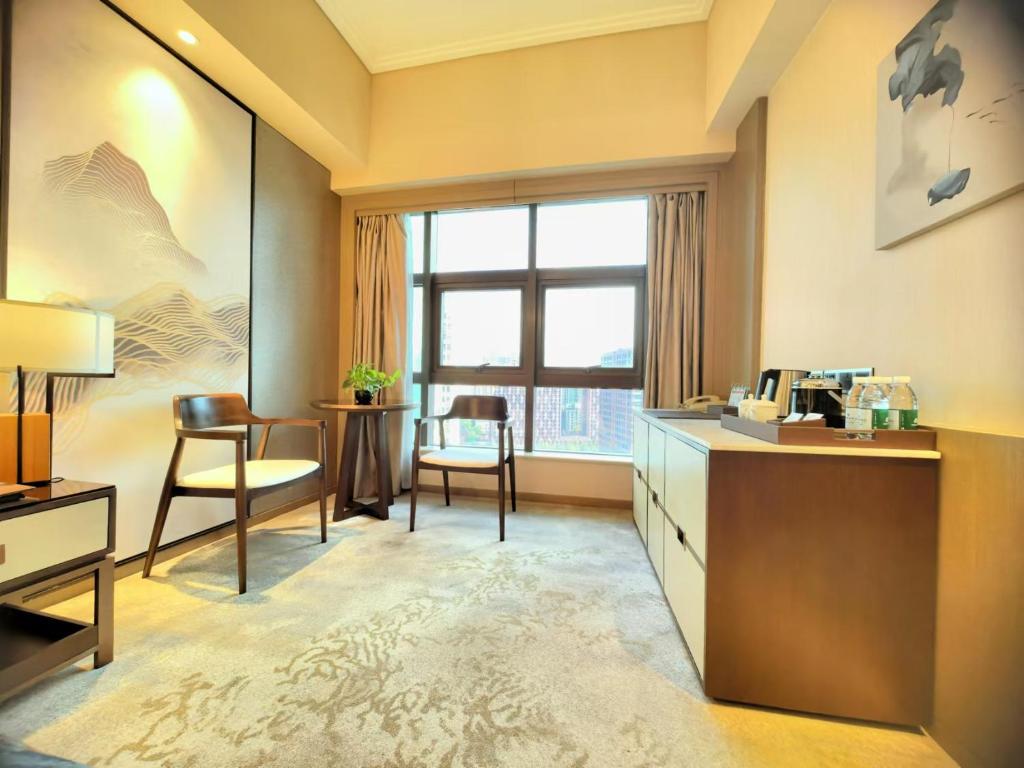 A Jin Jiang Pine City Hotel szobái a modern kényelem és a stílus tökéletes ötvözetét kínálják. Minden szoba légkondicionálóval van felszerelve, amely biztosítja, hogy a hőmérséklet mindig kellemes legyen, függetlenül az időjárástól. A szobákban található fürdőköpenyek és prémium minőségű ágyneműk gondoskodnak a maximális kényelemről, míg a hajszárító és a különféle toalett termékek a kényelmes készülődés élményét nyújtják.