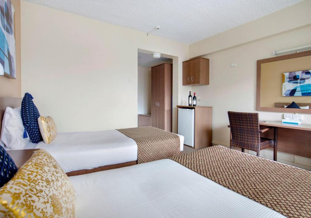 It's a good 3 star budget hotel. Booked it since we would be spending majority outside the hotel exploring Brisbane. Fairly close to the city center. Hence, a great location. The room was spacious/clean and the facilities were good as well. There was a coffee machine, kettle, fridge and iron. A liquor store, supermarket, and a few restos are nearby. The room was cleaned every other day as told by the receptionist during check in. The staff were friendly and knowledgeable of the area.