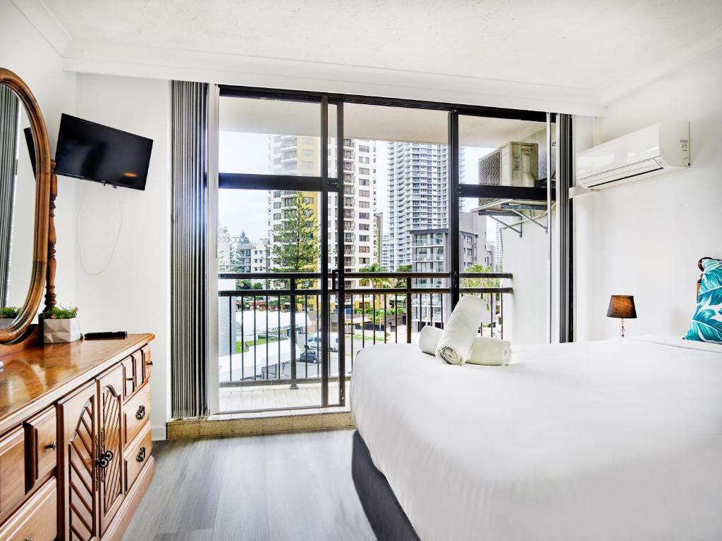 Kamar di Beachcomber Resort Surfers Paradise didesain dengan mengutamakan kebutuhan tamu. Nikmati pengalaman menginap yang lebih baik di serviced apartment di beberapa kamar pilihan yang dilengkapi dengan AC, layanan linen dan tirai kedap cahaya.