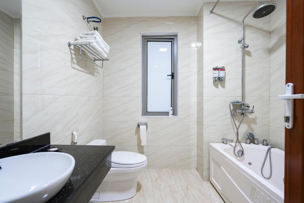 Untuk menambah kenyamanan Anda, tersedia minibar yang terisi penuh dengan berbagai pilihan minuman dan camilan. Anda juga akan menemukan air mineral dalam kemasan gratis yang siap menemani waktu bersantai Anda. Kulkas pribadi di dalam kamar memungkinkan Anda untuk menyimpan makanan dan minuman dengan mudah. Tidak ketinggalan, fasilitas mandi yang lengkap dengan perlengkapan mandi berkualitas tinggi dan pengering rambut, serta tirai blackout yang menjamin privasi dan tidur yang nyenyak. Semua fasilitas ini dirancang untuk memberikan pengalaman menginap yang tak terlupakan di Luxury Hotel Hạ Long.