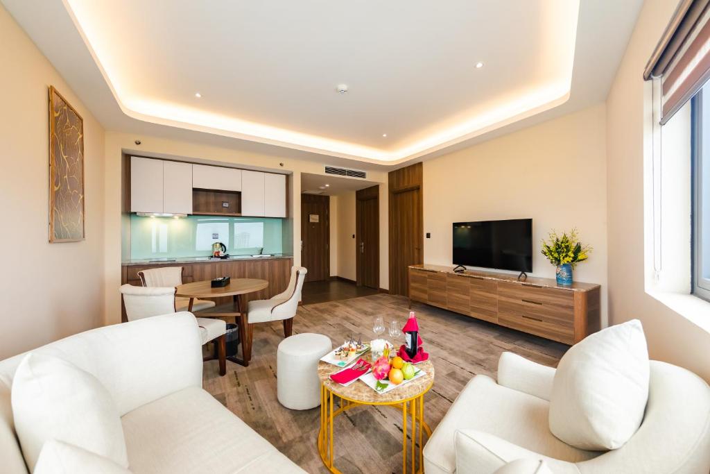 Ks memiliki lokasi yang strategis di seberang pintu masuk Sunworld, sangat mudah diakses, di depan adalah jalan pejalan kaki dengan banyak tempat makan dan kedai makanan ringan, cukup dekat dengan alun-alun pusat. Sarapan buffe beragam, kualitasnya baik. Staf sangat ramah, ceria, dan antusias. Kolam renang bersih dan dirancang dengan cerdik untuk memanfaatkan bayangan bangunan sehingga bisa berenang di pagi dan sore hari tanpa takut terik matahari. Kamar tidur dirancang dengan pemandangan laut yang sangat indah, kamar-kamar di sebelah kiri dapat melihat alun-alun pusat untuk menyaksikan karnaval. Kekurangannya adalah hanya ada 4 lift sehingga pada hari-hari puncak festival harus menunggu sangat lama, desain interiornya belum cukup mewah dengan tingkat kemewahan Mường Thanh.