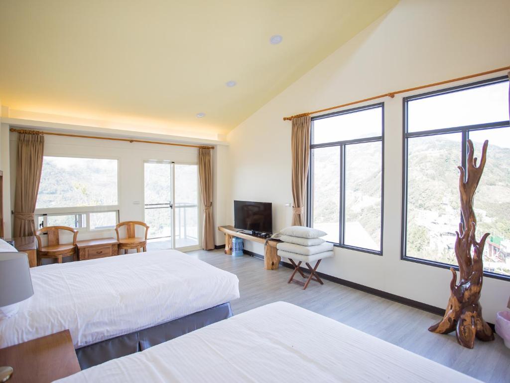 宿泊施設からの眺めは息を呑むような美しさです。清境とは異なり、公共バスは山道を一日二回しか運行していないため、交通手段を持っていない限り、ララ山は一人旅には便利な場所ではありません。 公式のチェックイン時間である午後3時に到着した時、ホテルには誰もいなくてがっかりしました。激しい雨が降っており、到着時間を知らせるメッセージを事前に送信し、予約確認書に記載された電話番号にも電話したのですが、応答がありませんでした。幸い、他の宿泊客が到着し、寒い雨から私を受け入れてくれました。誰かが私をチェックインさせるために到着するまで、陸上電話のある電話を探さなければなりませんでした。