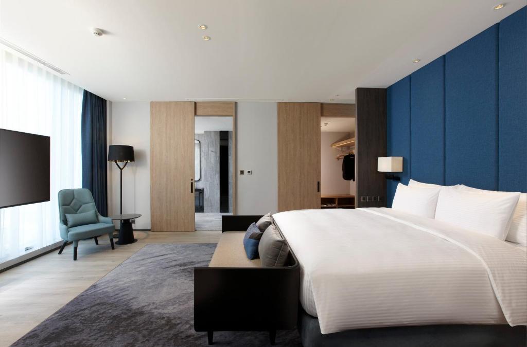 スタッフの対応が非常に丁寧で親切である点が高評価を受けています。また、水族館をテーマにした広々とした客室は綺麗に整備され、装飾も好評です。さらに、グロリアアウトレットやXパーク、新幹線HSR駅に近く、交通アクセスが便利な立地も大変便利とされています。国際的な料理や子ども向けステーションを含む豊富な朝食ビュッフェが楽しめ、施設面もテレビやロボット配送、子ども用アメニティやセルフランドリー設備が充実しています。