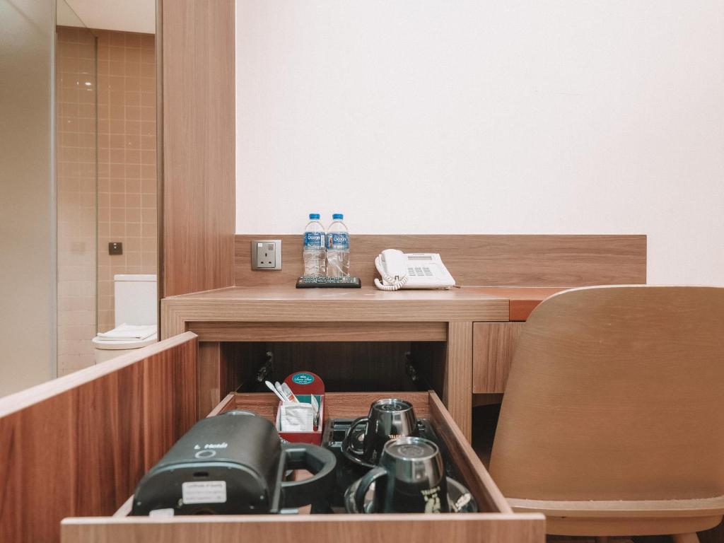 家族と小さな子供と一緒にA Hotel Bugisに滞在しました。場所は非常に戦略的で、Bugis Junction、Bugis Street、そしてBugis MRT駅にとても近いです。ホテルの真ん前にバス停もあり、移動がとても楽でした。 部屋は小さく、壁はかなり薄いため、時々他の部屋からの音が聞こえることがありました。しかし、正直なところ、シンガポールを探索している間は大半外に出ていたので、私たちには問題ありませんでした。予算に制限があるなら、この場所は良い選択です。 一つの欠点は、ベビーカーや大きなスーツケースにはあまり優しくないことです。メインの入り口には階段があり、裏口もありますが、少し遠回りになります。 面白いことに、最終日に屋上エリアがあることを初めて知りました!部屋は毎日掃除され、温かいシャワーも快適に使えました。シャンプーとボディウォッシュもとてもいい香りでした。 小さなことですが、カップや飲み物のエリアは掃除されず、ボトルの水だけが補充されていました。しかし、全体的にはすべてがきれいで快適でした。 私が最も気に入ったのは、7-Elevenにとても近かったことです。お腹が空いたり、夜遅くに何かが必要になった時にとても便利でした。全体として、悪くはありませんでした!