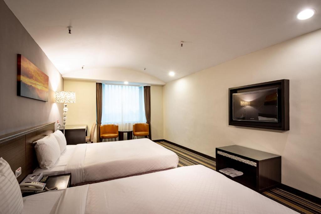 ホテルは嘉義高速鉄道駅からタクシーで約20分、電車で約45分、バスで約1時間の距離にあります。嘉義駅の正面に便利に位置しています。 同じ建物内には三つの異なるホテルがありますが、エントランスでの看板は明確で、エレベーターを利用する前にわかりやすいです。私たちの部屋は11階で、受付も同じ階にありました。ダブルクイーンサイズのベッドが二つある部屋にアップグレードしてもらえました。 部屋は非常に広々としており、中型のスーツケースが二つ開いていても、十分に動き回ったり祈ったりするスペースがありました。ベッドは少し硬めでしたが、四つの枕が用意されていました。テレビは多彩なチャンネルがあり、WiFiは速くて信頼できました。 バスルームには、良好な水圧のある温水と冷水のシャワー付きのバスタブがありました。シャンプーとボディソープも提供されていましたが、歯ブラシと歯磨き粉は持参する必要があります。 一つの欠点は、壁がかなり薄く、隣の部屋の人たちの会話や叫び声、さらには争い声が聞こえてきました。また、トイレにはウォシュレットがありませんでした。 全体的には快適な滞在で、立地と広々とした部屋のおかげでこのホテルをお勧めしますが、隣の客からの騒音には注意が必要です。