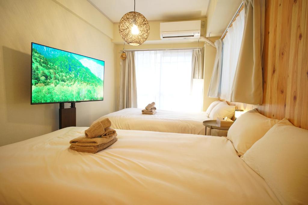 At Kita-Shinjuku Wood Wall Stay, guests can immerse themselves in the serene ambiance of thoughtfully designed accommodations. The One Bedroom Apartment, spanning 28 square meters, offers a cozy retreat featuring either two semi double beds or a comfortable sofa bed, making it ideal for couples or solo travelers seeking a restful escape. For families or larger groups, the expansive 3 Bed Apartment, covering 60 square meters, presents a versatile living space with a combination of one sofa bed, two semi double beds, and traditional Japanese futons. This unique configuration allows for a blend of modern comfort and cultural experience, ensuring that every guest finds their perfect spot to unwind.