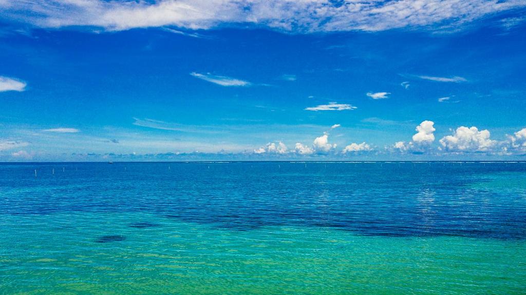푸른 바다와 푸른 하늘 아래에서 편안한 휴식을 즐기세요