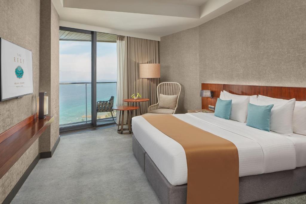 나는 이 호텔을 예약하는 것에 처음에는 주저했었다. 위치가 별로 좋지 않고 주변에 할 것이 많지 않아 특히 혼자 여행하는 나에게는 조금 불편할 수 있었기 때문이다. 그러나 이 호텔은 내 생각을 완전히 바꾸어 놓았다. 모든 것이 사진처럼 보였다. 인피니티 풀과 해변은 온라인에서 보여준 것처럼 멋졌다. 체크인은 정말 매끄러웠다. 도착했을 때 조기 체크인을 할 수 있었고, 놀랍게도 내 방은 바닷가가 보이는 발코니가 있는 방으로 업그레이드되었다. 바다 전망은 정말 아름다웠다. 물은 맑았고, 해변은 깨끗했으며, 호텔은 다양한 수상 스포츠 활동을 제공했다. 나는 스노클링을 하러 갔고 정말 즐거웠다. 현장에는 세 개의 레스토랑이 있다. 가격은 다소 비쌌지만(리조트에서 예상한 대로) 음식은 좋았다. 직원들은 모두 매우 친절하고 도움이 되어 내 숙박이 더욱 즐거웠다. 위치가 가장 편리한 것은 아니지만(어디에도 걸어갈 수는 없다), Grab이나 Moveit을 이용하면 쉽게 이동할 수 있었다. 이것은 내 위치에 대한 첫 번째 우려를 완전히 지워주었다. 언급할 만한 유일한 점은 온수가 그리 일정하지 않다는 것이다. 그들은 온수기를 사용하기 때문이다. 그래서 욕조에서 길고 뜨거운 목욕을 하려고 한다면 이상적이지 않을 수 있다. 그렇지만 이곳의 따뜻한 날씨 덕분에 나에게는 큰 문제가 아니었다. 전반적으로, 나는 The Reef에서 멋진 시간을 보냈다. 나는 분명히 이곳을 추천할 것이고, 다시 돌아오고 싶다.