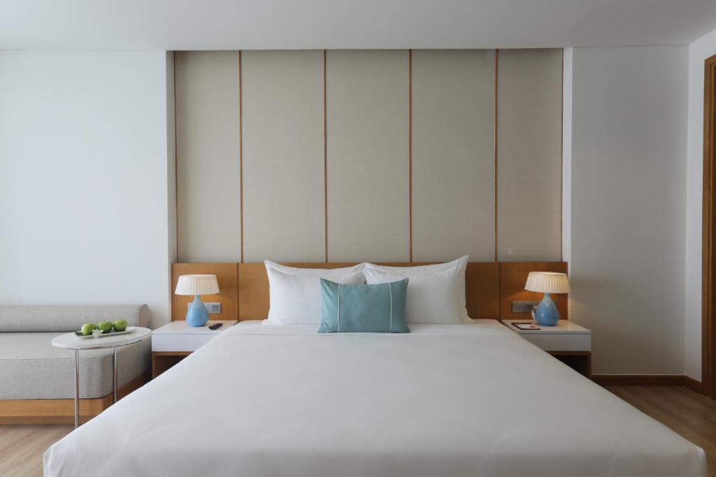 TMS 호텔 다낭 비치에서는 고객의 다양한 취향과 필요에 맞춘 여러 가지 객실 옵션을 제공합니다. 45제곱미터의 프리미어 시티 뷰 더블룸과 오션프런트 더블룸, 그리고 45제곱미터의 프리미어 오션프론트 트윈룸 등은 모두 발코니를 갖추고 있어 멋진 바다 전망을 감상하실 수 있습니다. 더 넓은 공간을 원하는 고객을 위해 70제곱미터의 패밀리 2베드룸 스위트 오션 뷰와 80제곱미터의 그랜드 2베드룸 스위트도 마련되어 있으며, 이들 객실은 각각 슈퍼 킹사이즈 또는 킹사이즈 침대와 싱글 침대 옵션을 갖추고 있어 가족 여행이나 특별한 휴가에 적합합니다.